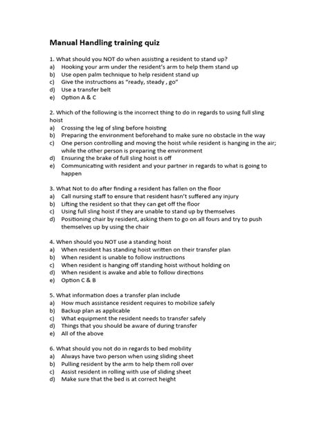 Read Online manual handling multiple choice questions PDF Google eBookstore